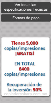del que viene de fábrica el equipo, tu equipo podrá imprimir o copiar 8,400 paginas al 5% de cobertura, las cuales si las vendieras o las compraras en cualquier lugar, estas te costarían en promedio 50 Centavos por hoja, se gastarían $4,200 por lo que te aseguramos que de inicio ya recuperaste más del 50% de tu inversión..